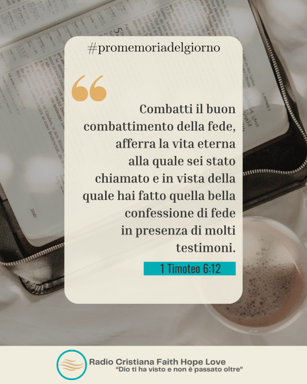Combatti il buon combattimento della fede, afferra la vita eterna alla quale sei stato chiamato e in vista della quale hai fatto quella bella confessione di fede in presenza di molti testimoni.