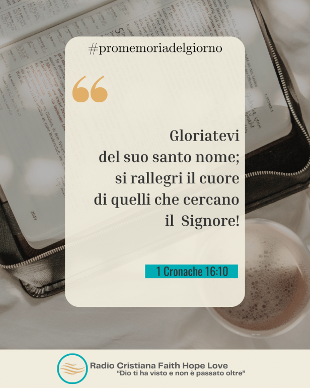 Gloriatevi del suo santo nome; si rallegri il cuore di quelli che cercano il Signore! Cercate il Signore e la sua forza, cercate sempre il suo volto!