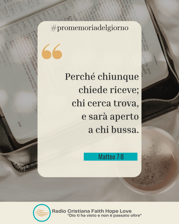 Β«Chiedete e vi sarΓ  dato; cercate e troverete; bussate e vi sarΓ  aperto; perchΓ© chiunque chiede riceve; chi cerca trova, e sarΓ  aperto a chi bussa.