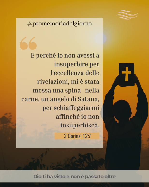 ‘E perché io non avessi a insuperbire per l’eccellenza delle rivelazioni, mi è stata messa una spina nella carne, un angelo di Satana, per schiaffeggiarmi affinché io non insuperbisca.
