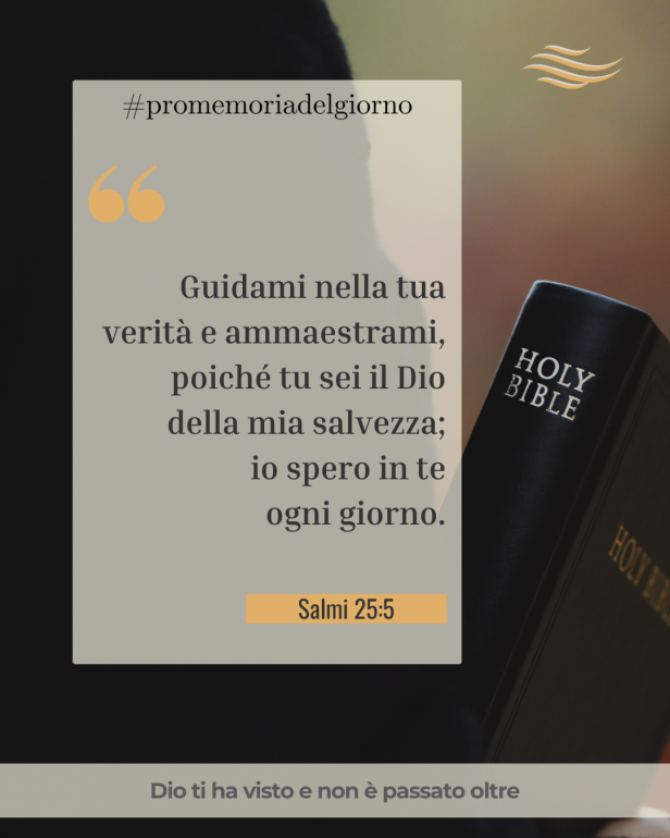 Guidami nella tua verità e ammaestrami, poiché tu sei il Dio della mia salvezza; io spero in te ogni giorno.