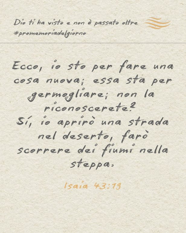 Ecco, io sto per fare una cosa nuova; essa sta per germogliare; non la riconoscerete?